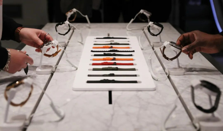 在法国巴黎华为旗舰店,来宾试用智能手表。(新华社资料图片)