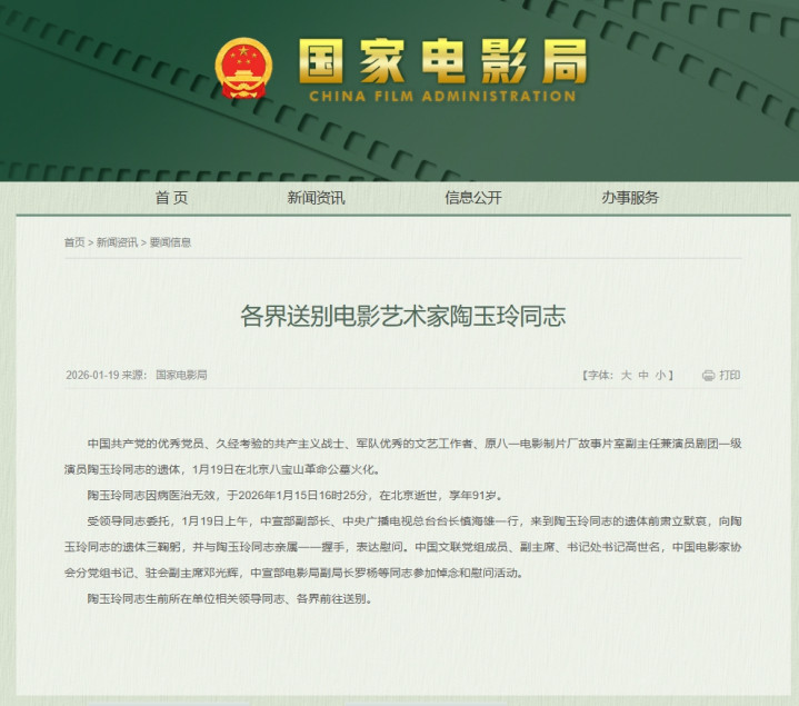 新京报讯据国家电影局消息公赢网配资,中国共产党的优秀党员、久经考验的共产主义战士、军队优秀的文艺工作者、原八一电影制片厂故事片室副主任兼演员剧团一级演员陶玉玲同志的遗体,1月19日在北京八宝山革命公墓火化。